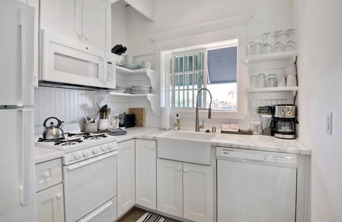 Our ocean front home we lovingly call Juniper Beach Studio, is located steps away from a staircase leading down to the pristine beach of Carlsbad, CA. Juniper Beach Studio features a queen sized bed, one bathroom, and sleeps two adults. As soon as you walk in the door the elegant beachy decor welcomes you to your beach vacation. When you are ready grab a boogie board or go surf. You will be on the beach and enjoying the water within minutes. If you prefer to explore on land, this home is known for it's "walkability" located walking distance to excellent restaurants such as Vigilucci's, Park 101, and many shopping options located in the Village. After a fun filled day, head back to Juniper Beach Studio to retire on the second floor deck to watch beautiful sunsets go down over the Pacific Ocean nightly.