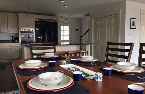 The cottage was built in 2014 with a gourmet kitchen, Viking appliances, and granite throughout. Hardwood floors on both the first and second floors, double sliding doors on the 1st floor. 2 bedrooms have queen-sized beds with dressers and an ocean view. Bedroom 3 has a bunk bed and one single bed, and the den has a queen bed. The laundry is on the first floor with a brand new XL capacity washer/dryer. There is a full-size bath on both the first and second floors—a large dining room table and an oversized bar in the kitchen with bar stools. The living room has a small flat screen tv with cable and couches. The porch has ample seating and is equipped with a grill and table. The porch is 10 feet wide and wraps around the house with a descending stairway towards the private beach. The beach access is located on the left side of the property, less than 100 yards away. Come stay with us and visit Acadia National Park.