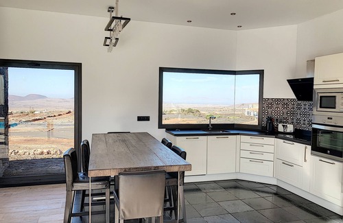 The villa is on the top of Corralejo, between Villaverde and the typical village of Lajares. The place offer a gorgeous 180 ° sea view on the atlantic ocean. You see from the house Cotillo to the west, the island of Lanzarote and the small island of Los lobos. It is located 10 minutes from Corralejo and 5 minutes from Lajares. There is a bakery in the village and excellent restaurant with the best Tapas restaurant in spain. the place is wonderfull to stay for people who wants to relax, enjoy the nature, surf sports, bicycle and many more .. You will appreciate my accommodation for You will enjoy this villa for the unique view on the atlantic ocean. The view is really a must. The villa offers big windows in order to sea the ocean from almost anyplace in the house. The lights at night offer you a relax and charming ambiance. The swimming pool is protected from the north wind (you can ask to use the heat pump of the pool, it is an option, there is a cost of 100 Euros / week in this case). The architecture of the house was made in order to shelter from the wind. The master bedroom offer a integrated bathroom with a view on the volcano and the ocean ..