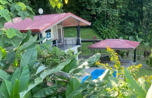 Make yourself at home in this 2-bedroom retreat. With 1 queen bed and 1 king bed, swimming pool, ocean views, and privacy, guests can relax in comfort. Enjoy watching toucans, holler monkeys, and various birds in the treetops from the large, covered master deck. Just a short drive on paved roads from the village of Ojochal. Beaches, Shops, and restaurants nearby, including coffee shop and organic market within walking distance. Two Pickleball clubs a short drive away that offer covered courts. Book now and enjoy everything this house has to offer.