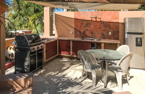 The villa is fully equipped with all the amenities you will need to enjoy your Mexican getaway. Equipped with 2.4G and 5G fiber internet connection, you'll stay connected in a relaxing place. The kitchen is well equipped with modern appliances, including a Vitamix, oven, microwave, coffee maker, air-fryer, and filter water spout. This house has a unit that provides hot water for one shower at a time. Please schedule your showering accordingly.There is an outside stove and Weber grill for your use by the pool. Both have