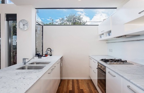 The beach house is set high on the hill overlooking One Mile and Samurai Beaches and is surrounded by national park. The lounge, dining room and kitchen are enclosed by full length glass offering you panoramic ocean and bush views. Sit back, relax and unwind; let the tranquility work its magic or cook up a storm or a BBQ then sit back and enjoy the fruits of your labour whilst taking in the view. If the ocean isn't enough then the birds and wildflowers provide their own magic.