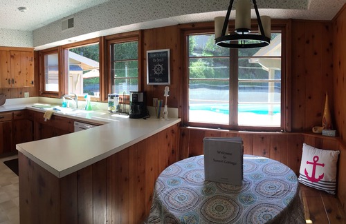 When you walk into Sunset Cottage, you'll feel like you've stepped back in time....the kitchen cabinets, wood paneling and bathroom tile are all charmingly vintage! That said, all the amenities are brand new. Beautiful 400 thread count, 100% Egyptian Cotton sheets grace every bed with 100% cotton bath towels in each bath. The furniture, including all bedding, is brand new and designed to help you and your friends and family sit back, relax and enjoy each other's company.