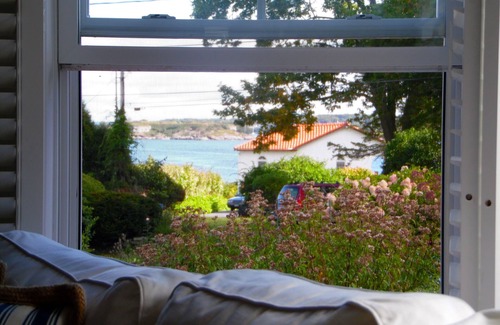 Adjacent and open to the living room is the sun room, with beautiful views of the ocean and the islands so close to the cottage. This room has a small dining table with two chairs from Maine Cottage and doubles as a delightful breakfast nook.