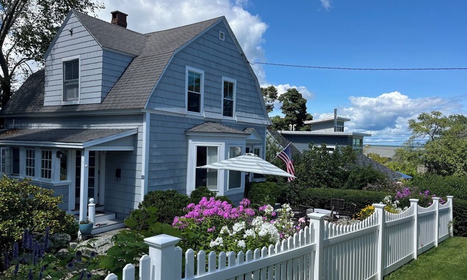 This quintessential year-round Maine cottage is fully-renovated and is surrounded by stunningly beautiful English gardens and stone patios, with the patios and most rooms in the house enjoying lovely ocean views of the Portland shipping channel and the islands of Casco Bay.