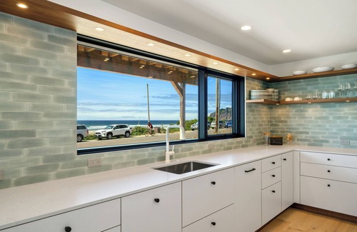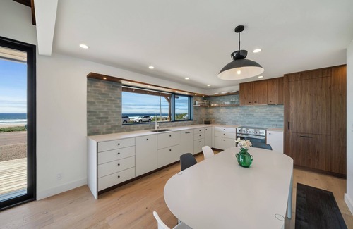 Spend your evenings preparing meals in the entertainer's kitchen, featuring a Fisher & Paykel cooktop range and built-in refrigerator, as you gaze onto the ocean and Neahkahnie Mountain. You'll find everything you need in this well-stocked kitchen to make memorable meals with family and friends at the beach. The dining table offers ocean views too!