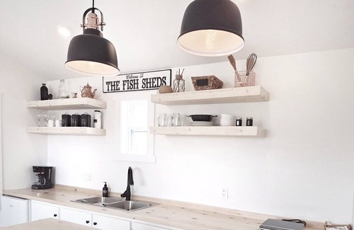 The cottages are designed to be cozy and peaceful. We wanted to create an atmosphere that will allow you to rest and relax on your stay in Gros Morne. The Fish Sheds are single room cottages but there is ample room and storage provided. The living room was designed to let you take in the beautiful vista while you read a book or listen to some music. Our kitchens have plenty of prep room and will satisfy most travellers cooking needs. The bathrooms are spacious and have a standing shower.