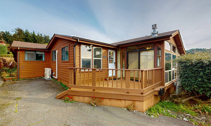 This single-story home enjoys an oceanfront position just across the Oregon Coast Highway and up the hill from Whaleshead Beach. It's located in what is perhaps the most picturesque stretch of the entire Oregon Coast - a place to hike the Oregon Coast Trail, take photographs, and go for long, scenic drives. Harris Beach State Park, Cape Ferrelo, the Thomas Creek Bridge, Natural Bridges, and Arch Rock State Park are all within seven miles.