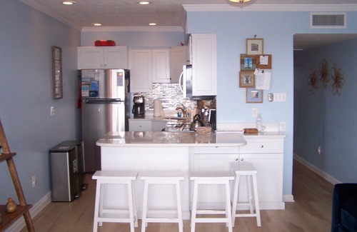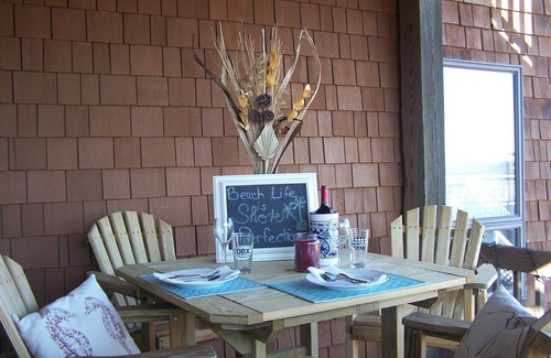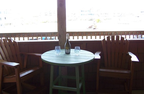 Our condo features a master bedroom with comfortable king size bed, two full baths, bunk beds in hallway alcove. Fully appointed kitchen, two flat screen tvs (LR & MBR), free WIFI, deck furniture (tall bar table with 4 tall adirondack chairs & 2 adirondack rockers), keyless entry system, parking space right in front of unit, a "bistro" on front deck with chairs and table.