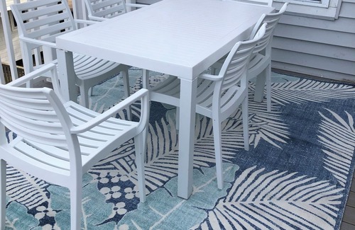 The deck off the dining area has a large table and chairs for outdoor dining. The deck off the kitchen is bayside for great sunsets and a seating area to enjoy your glass of wine.