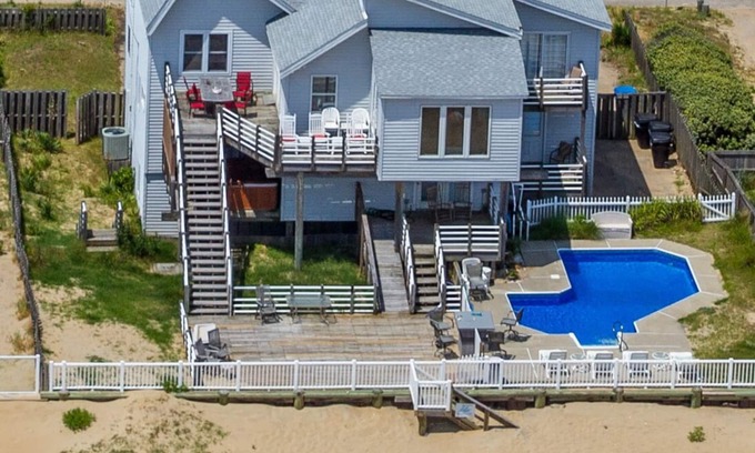 Step out your back door and walk the beautiful Atlantic beach. Or relax by the oceanfront pool. Enjoy the ocean view from the hot tub off the Master deck. Or simply relax on any of the 5 oceanfront decks and watch the dolphins play.