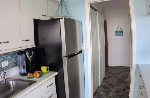 Fully furnished oceanfront property. Includes a recently renovated en suite master bath, attached to the master bedroom. The hall bath was also fully renovated in the last few months. Our property is an oceanfront private security camera monitored residence. It is outfitted with washer and dryer, full kitchen, spacious veranda, with a view of the ocean and recently renovated private pool. The pool area is furnished, with multiple lounge chairs, bar area and bbq's. We are 5 minutes from Christiansted historical sights and boardwalk. Convenient to all shopping and entertainment, walk on our private beach to next door restaurants. Excellent area for sunbathing, swimming and snorkelling. Enjoy snorkelling in the man made tire reef in the backyard!, where you will view barracuda, rays, turtles, colourful tangs, and Lion Fish. Quiet non-smoking, respect our neighbours. Featured in HGTV House Hunters Caribbean Life episode. We know that after one visit in our beautiful locale, you will come to enjoy St. Croix as much as we do.