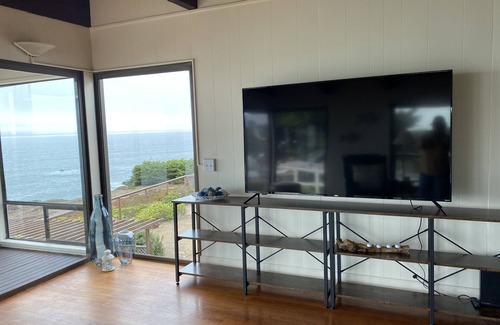 As soon as you walk in the door you feel like you're in the ocean. This beautifully appointed 3 bedroom, 3 bath home accommodates 6 very comfortably with all new furnishings. Start your day in the Zen Room for some yoga or meditation. Relax by the firepit on the back deck enjoying a beautiful sunset or walk straight out the back gate to the coastal trail for endless views and the fresh salty air. Whale watch right from the living room. Only 30 minutes from SFO, downtown San Francisco and less than an hour to Silicon Valley.