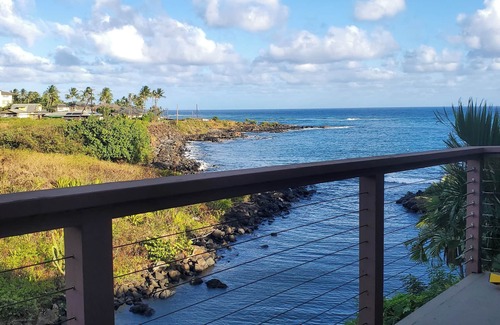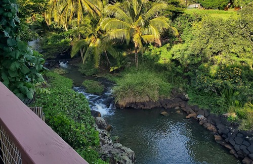 We love to sit on the studio’s oceanfront balcony and watch the green sea turtles swim below, the snorkelers and divers, and the kayaks and outrigger canoes paddle by. When the cool trade winds are blowing, it just doesn’t get much better.