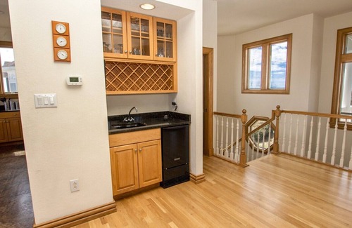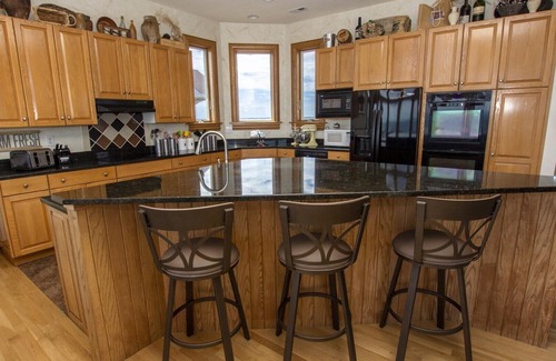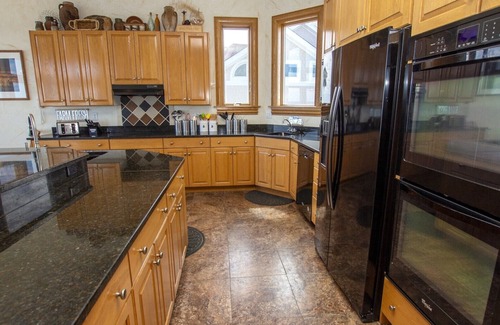 Top Level: The grand great room features vaulted ceilings, large palladium windows and private terraces with panoramic views. There is a 65" HD flat-screen TV with state of the art in home surround sound system and premium cable, iPhone jack, Blue Ray player and a DVD library for all ages. Built in wet bar with ice maker and a private half bath. Two dining areas, one overlooking the sound the other overlooking the ocean. The kitchen is equipped with the essentials of home including coffee makers, small appliances, mixers, baking pans, cooking utensils and accessories. The large granite center island features a breakfast bar and lots of counter top space for preparation of large home cooked meals for your guests. You'll also find double ovens, a microwave, a 5-burner smooth top cook top and two dishwashers for quick easy cleanup.