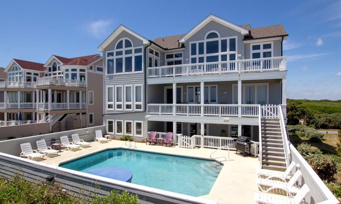 Wellfleet is THE Outer Banks destination for your next Oceanfront retreat with family and friends! This home is located in the heart of Pine Island and is conveniently situated between Duck and Corolla. You are minutes to historic parks and villages, local restaurants, coffee shops, entertainment, boutiques and grocery stores! Wellfleet is a spacious and elegant home with numerous incredible views of the ocean and the sound. The two front terraces overlook the Currituck Sound and the Audubon Wildlife Refuge, a 5,000 acre natural habitat that is home to 100's of species of waterfowl and wildlife. The back verandas overlook the Atlantic Ocean where you can dolphin watch or just sit and relax and enjoy the sound of the ocean waves splashing on the shore. In the evening take in some good old fashion constellation and star gazing. Most of all, take a moment every day to enjoy the breathtaking sunrises and sunsets.