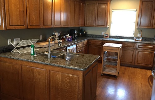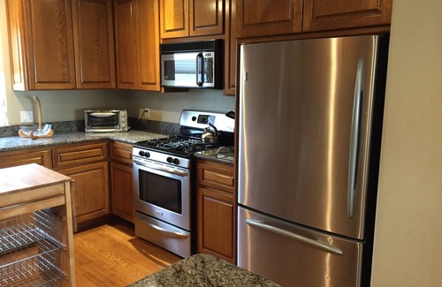 The spacious kitchen is fully equipped with stainless steel appliances, pots/pans/cookware and all the cooking gadgets you need, including an espresso machine, a drip coffee machine, a coffee grinder, a blender, a mixer and a toaster. You can celebrate, entertain and cook to your heart's content. Everything you need to prepare that special celebration dinner or your family's evening meals is right there.