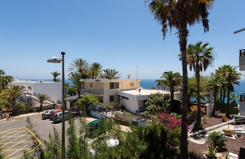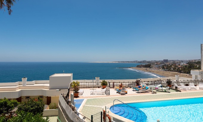 Oceanfront studio ( 41 m2 ) with exquisite views in the exclusive San Agustin area,offers total peace and privacy though only a 4-minute ( 5 euros ) taxi drive away from the center of Playa del Ingles ;this is the elegantly exclusive side of Maspalomas.