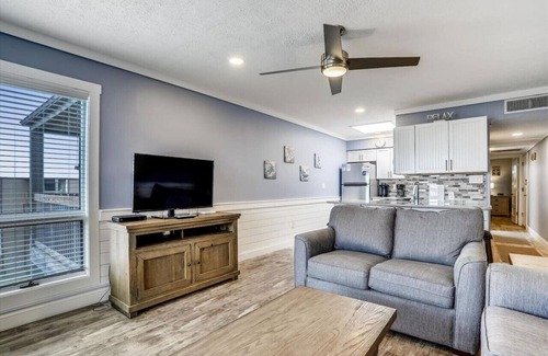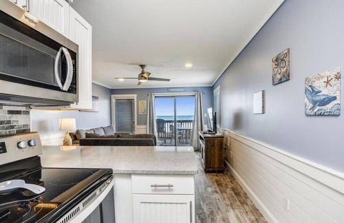 This condo has been completely updated in the last 2 years. It's 684 sq ft. It has an oceanfront deck view that is a great place to sit and enjoy your morning coffee. There will be times that you will see dolphins from your deck. The living room has a smart TV and is comfortable for 4 people. There is a queen size pullout couch. The kitchen is fully stocked and updated. The master has a kingsized bed and a full master bath.