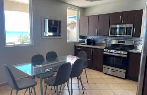 If you're looking to get away to the beach with you extended family and friends, you must stay at Casas Sol Rico. You can't stay any closer to the beach and ocean than this! Both houses have huge terrazas and their own private access to the beach. Casa Sol Rico Uno has 4 bedrooms and 3 baths (sleeps 10) and Casa Sol Rico Dos has 3 bedrooms and 2 baths (sleeps 8). Both houses have AC in ALL the rooms. The houses are side-by-side and only have a wall in between them. Simply walk out the front door and through the gate to get to the other house or go out the beach door onto the sand and go through the other house's beach door. There is gated parking at each house for 2 cars with additional street parking available.