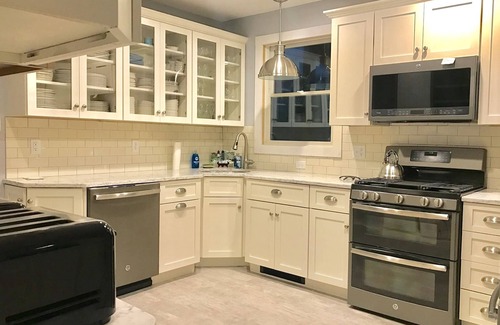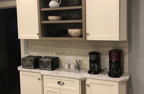 There is a fully equipped kitchen (including pots/pans/dishes/glasses/wine glasses/toaster/coffee pot/blender/microwave/extra large fridge in shed and small fridge with ice maker on indoor porch), linens, bath towels, wireless high-speed internet, and cable TV in every bedroom. A washer/dryer is also available for use, as well as a fenced in outside area with a very large natural gas BBQ, 2 picnic tables and lounge chairs. A private parking lot for the property can fit around 14 cars.