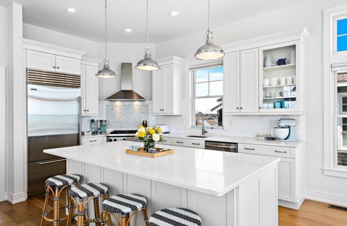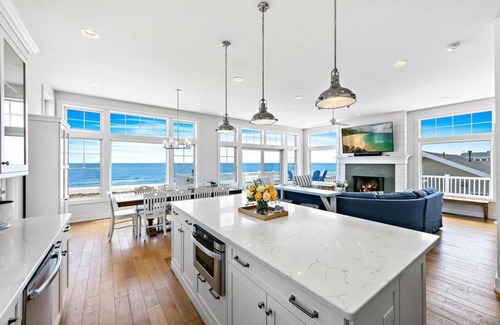 Soak in the expansive ocean views from top floor open living and dining space. This new construction is currently under the care of a professional decorator to make this property spectacular for your vacation. Luxury finishes, hardwood floors, vaulted ceilings, gas fireplace, gathering table for summer feasts. Amenities including an elevator, brand new mattresses, 2 extra family rooms, Wolf stove, Sub-Zero fridge, rooftop fire pit, Weber gas grill, beach bikes, boogie boards, outdoor shower, on-suite baths and so much more.