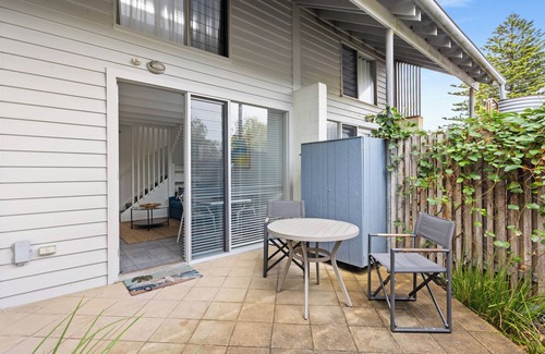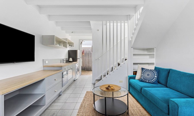 Boasting a harmonious fusion of convenience, serenity, and an invitation to unwind and rejuvenate, the open-plan layout seamlessly merges the living, dining, and kitchen areas, flowing through to a second courtyard at the rear, with plenty of sunshine to enjoy. A stylish bathroom completes the downstairs floor plan, whilst upstairs, the bedroom easily accommodates a king-size bed with ample room to relax; Along with a single and trundle bed for the children.