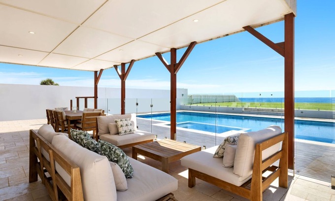 The private BBQ area and outside dining terrace are ideal for entertaining or enjoying a relaxing dinner listening to the ocean and feeling the sea breeze. Enjoy a refreshing swim in the large beachfront pool.