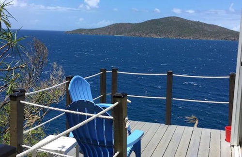 “Mini-Margarita” is a spacious studio apartment overlooking the ocean from the island of Hans Lollik to Jost Van Dyke, Tortola, St. John, and beyond. From the cliffside deck you can enjoy fresh ocean breezes in this tropical getaway. The studio is furnished with a king bed, futon, a bistro set, a compact kitchen (two burner gas cooktop, micro/convection oven, and full-size refrigerator), and a small BBQ. Relax and sunbathe on the deck or discover the islands many treasures. Beach towels and a cooler are provided if you wish to explore some of the island’s beautiful beaches, including Magen’s Bay Beach which is only 2 miles away.