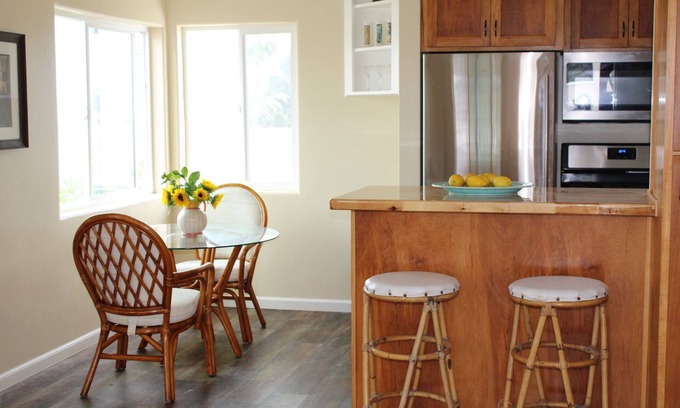 Relax and unwind at this newly renovated surf villa, 4 blocks from the water in Ocean Beach. This space was lovingly built with a spacious master bedroom, living room, and kitchen. Sunbathe and read or sunset watch and dine on the large private deck. Take a stroll to shops on Newport Avenue (OB donuts is a must!). Your hardest decision during your stay will be deciding between catching waves at Sunset Cliffs, bar-hopping in Pacific Beach, fine dining in Little Italy, or Netflixing in bed.