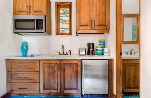 This spacious beachfront home is a medley of colorful interior design, embracing the playful beauty and soul of Guanacaste with nothing but the quiet of a serene tropical forest surrounding you. Tree canopies, gorgeous hillside homes, and views of the ocean appear at every window and outdoor terrace.