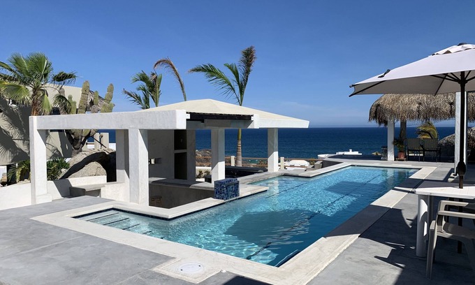 This beautiful ocean view solar studio with new 35' lap pool and swim up bar, is located in the guarded & gated community of Laguna Hills, just 6 miles east of downtown San Jose Del Cabo, and only 3 miles to Flora Farm. This is a very safe and secure neighborhood. And a short walk down to the beach, you’ll find Buzzards Bar & Grill where Breakfast, Lunch and Dinner are served. Brunch only on Sunday.