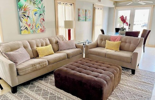 Stay with us at this ocean view apartment in a PHENOMENAL location in Jax Beach. Walking distance to downtown Jax beach and a short drive to Neptune Beach town center. Both areas have amazing restaurants, cafes, shopping and plenty of night life. This property was curated by a local designer.