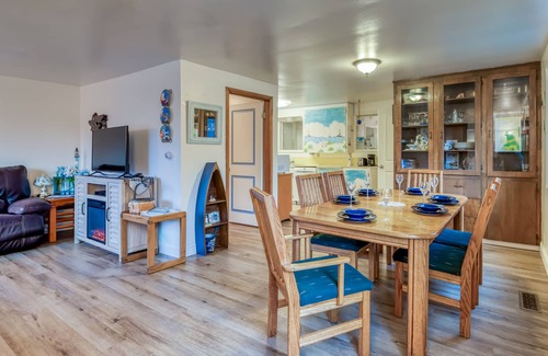 Welcome to The Lighthouse in Lincoln City, located in, you guessed it - Lincoln City! This one story home has room for up to six guests, with two bedrooms and two bathrooms! You'll have incredibly close beach access, just a short walk away down the street, with not one, but two beach access points just a short distance apart from each other! There is also a bookstore, a couple of restaurants, and even a chocolate shop selling freshly made chocolate every day just a short walk from this lovely home as well! Next to the bookstore is a playhouse, with plays performing all year, so check out the showtimes while you're here! Step inside, and you'll find yourself in an open space containing both the living room area and the dining area. The sofa pulls out into a queen size couch, perfect for the kids to camp out on during your stay! The dining room table offers seating for up to six guests, so feel free to also eat in the living area! The kitchen is decorated with a cute coastal theme complete with sailboats and water, and offers everything you need to whip up some simple, homemade meals while on your stay. Head down the hallway and you'll find two bedrooms, two bathrooms, and even a laundry room! You'll find the first bedroom in the hallway, complete with a walk-in shower. The first bedroom offers a queen size bed. The second bedroom offers a queen size bed as well, along with it's own attached bathroom, complete with a shower/tub combo. The laundry room is open for our guests, so feel free to pack lightly during your trip and wash clothes while on your stay! You and your family are sure to love this quaint home with close beach access in the heart of Lincoln City! A short drive north will bring you to several other restaurants, along with the outlet mall! Down south, you'll find the Taft district, snuggled up against the Siletz Bay, with more food options and plenty of glass blowing shops if you feel so inclined! Book your stay at The Lighthouse in Lincoln City today!
