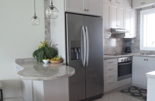 The kitchen is loaded with all you need (really, I like to cook!). Full-size fridge with icemaker, oven and ceramic cook top, microwave oven, dishwasher, coffeemaker, toaster, blender and electric kettle. We even provide a crockpot! Solid surface countertops offer plenty of workspace if you feel like cooking and enjoying a meal on the privacy of your own balcony. Smokey Joe grill you can take to the beach with you if you want to enjoy a BBQ picnic.