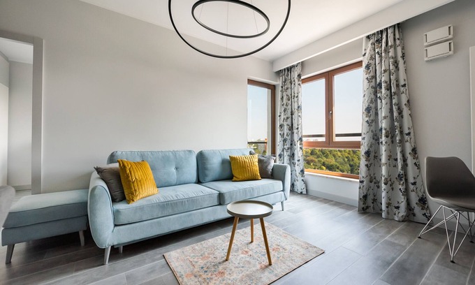 Ochota City View Modern Apartment is a stylishly furnished apartment located in an excellent location in the Ochota district, just an 8-minute taxi ride from Chopin Airport. Nearby, you'll find Szczęśliwicki Park, characterized by diverse landscapes, including lush meadows, dense forests, and a tranquil pond. This variety of environments makes it an ideal place for various outdoor activities and relaxation. Visitors can enjoy jogging or cycling along the numerous paths that wind through the park, have picnics on the grassy lawns, or simply take a peaceful stroll amidst nature. For sports enthusiasts, Szczęśliwicki Park offers a range of facilities, including tennis courts, basketball courts, and a well-maintained football pitch. There's also a designated area for children, equipped with modern play equipment. In the immediate vicinity, you'll find various shops (Żabka, Carrefour, Biedronka, Top Marek Kanwa), numerous restaurants (Pizza Hut, Videlec, Dreamland Indian Food, Papa John's Pizza, Chile&Chill Empanadas, and many others), as well as entertainment venues like Minus Jeden pub, and service points. The apartment's location facilitates easy travel around the city, due to the numerous bus and tram stops (Grójecka, PKP Rakowiec) and the railway station (Warsaw Rakowiec).