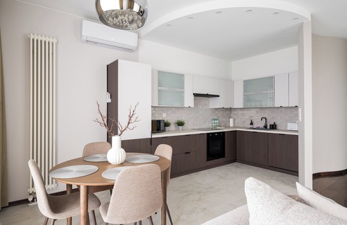 Ochota Prime Loft Apartment is a stylishly designed apartment featuring a living room with a fold-out sofa, two bedrooms with large double beds, and an additional bedroom with a comfortable single bed. The spacious kitchenette is fully equipped with essential appliances and kitchenware, allowing guests to conveniently prepare their own meals. The apartment also offers a modern bathroom with a large bathtub and a shower, a separate toilet, and a spacious balcony with a panoramic view of the city – the perfect spot for morning coffee or an evening glass of wine.