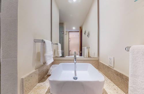 When you call this Akumal apartment your next escape, the sea is practically at your doorstep! Under the warm tropical sunshine, spend your afternoons on the beach, in the shared plunge pool, or while practicing your putt at one of the area's popular golf courses. Additionally, nearby, you'll be able to visit the Akumal Monkey Sanctuary, Cenote Azul, and Xel-Há Park.