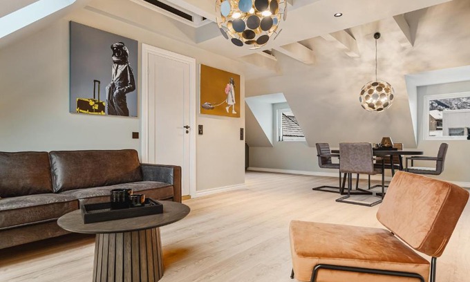 Food & DrinkTea/Coffee makerBathroomHairdryer, Toilet, Private bathroom, Towels, Toilet paper, ShowerMedia & TechnologyStreaming service (like Netflix), Flat-screen TV, TVGeneralFire extinguisher, Hardwood or parquet floors, Ironing facilities, Private entrance, Heating, Soundproof, Lockers, Smoke Alarm, Iron, Trash cansKitchenWine glasses, Stovetop, Dishwasher, Kitchenware, Electric kettle, Oven, Toaster, Dining table, Microwave, Kitchen, Refrigerator, Washing machineOutdoorsOutdoor furniture, PatioLiving AreaSofaViewMountain view, Landmark view, View, City view, Sea viewBedroomLinens, Childrens' cribsRoom AmenitiesSocket near the bed, Drying rack for clothing |