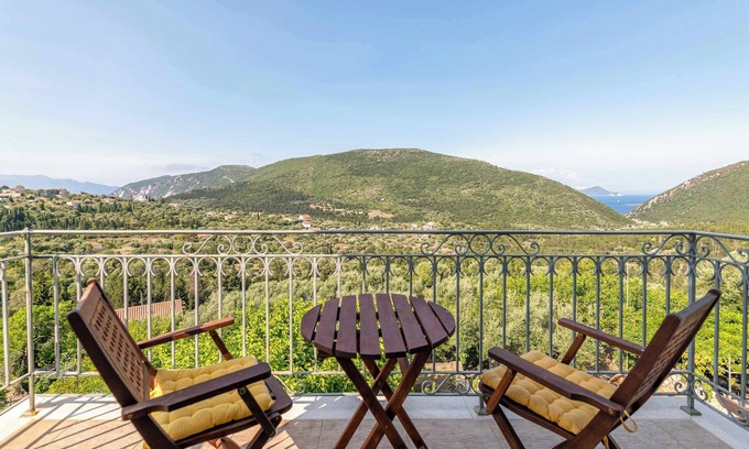 Experience the myth in this spacious villa on the island of Ithaca, just 2km from the beach, featuring 5 bedrooms and large balconies with stunning views of the surrounding nature. Perfect for families or groups looking for an idyllic island escape, the villa combines traditional Greek charm with modern amenities. Enjoy outdoor dining, and relaxation on the balconies. With comfortable interiors, plenty of natural light, WiFi and private parking space are included for your convenience.