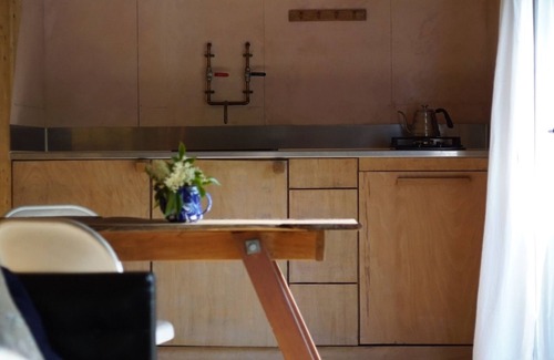 You'll find a fully equipped kitchenette with a cooking hob, a spacious endlessly hot shower, a waterless composting toilet, a TV for those cozy evenings, a bespoke design wooden table for both working and eating on, lots of wardrobe space, a wood burner for warmth, a luxury memory foam mattress and a comfortable sofa to relax on.