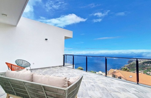 Welcome to "Ohana Ocean View," a brand-new modern villa in Calheta. This three-bedroom retreat offers a perfect blend of luxury and comfort, designed for the ultimate relaxation. With a private pool and spacious balconies, you can bask in the breathtaking ocean views. The villa is elegantly decorated with contemporary furnishings and equipped with smart TVs for entertainment.