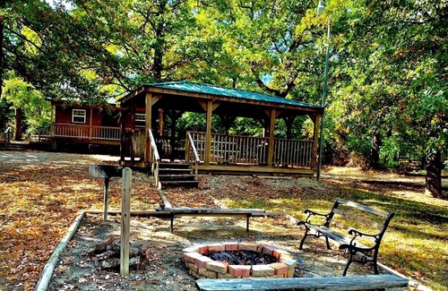 Great little cabin, sleeps 5, has multiple fire pits, gazebos, a storm shelter, and playground for kids. Blocks from Lake Arbuckle and 10 minutes or less to Sulphur, The Artesian, and all that Sulphur has to offer