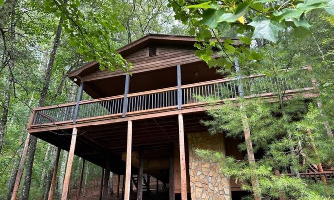 Escape to this charming, dog-friendly log cabin nestled in the heart of the North Georgia mountains, where nature’s beauty surrounds you. Perched among the trees, this delightful retreat offers a serene atmosphere, perfect for relaxing and reconnecting with loved ones.