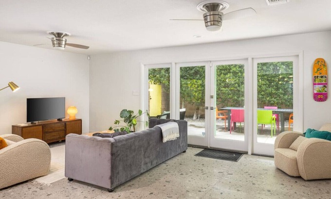 Living room is tastefully decorated with a smart TV with both Apple TV and Roku for a plethora of streaming options. Enjoy direct access to the outdoor dining area!