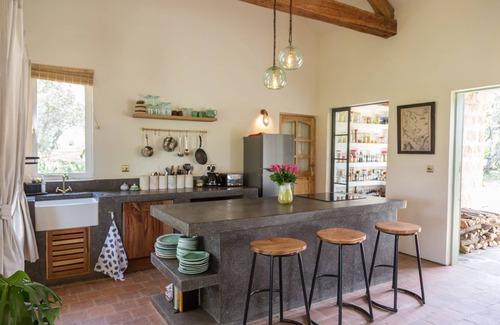 Explore beautiful Lake Naivasha from this stunning rustic modern house overlooking a wildlife conservancy. The house was lovingly built with clay floors, high-beamed ceilings, huge pivot windows, and antique details for a luxurious but charming feel. The house borders Oserengoni Wildlife Sanctuary, so enjoy the views of giraffes and zebras from your spacious verandah and lush peaceful garden. Fine dining at Ranch House Restaurant & food shopping at La Pieve Farm Shop is just 5 minutes away!