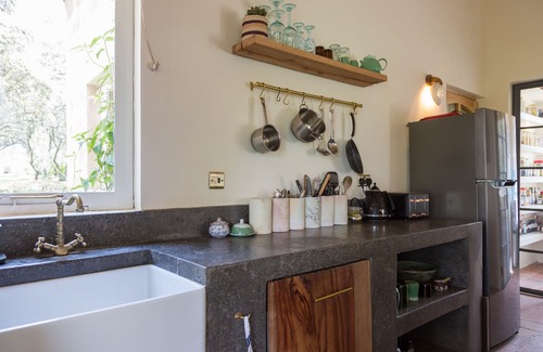 The spacious open-plan kitchen and living room has a brand-new oven, induction hob, huge fridge and two BBQs to make sure it is a cooking and eating paradise! The pantry full of herbs and spices certainly helps with this too. Brass spotlights, built-in bluetooth ceiling speakers, a comfy sofa, a well-stocked bookcase, modern wardrobes, nightstands with drawer space, a TV room and reliable wifi networks complete the space.
