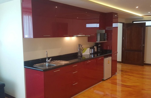 This beautiful apartment is located on the ground floor of this four storey block. All floors, except the basement, are reached by an elevator. The basement has a laundry room with banks of washers and dryers. There is a Mineral Water Spa Swimming Pool and Sundeck located on the roof which has fantastic views of the surrounding mountains and the famous Doi Suthep temple. This apartment has a fully fitted kitchen, stove, microwave, fridge and all you need for cooking, eating and drinking. The bedrooms have top of the range Slumberland Mattresses, Egyptian cotton bedding and all have their own balconies with balcony furniture. The en-suite bathrooms have rain showers and every bathroom and the kitchen has its own hot water tank providing as much hot water as you want. Every room has its own Daikin roof cassette multi directional air conditioners which can quickly drop the temperature down to 16 degrees if you want. The lazer controlled 55 inch flat screen tv has cable, utube, netfix and internet access as well as being loaded with hundreds of the best, and latest, movies including pretty much every childrens movie ever made.