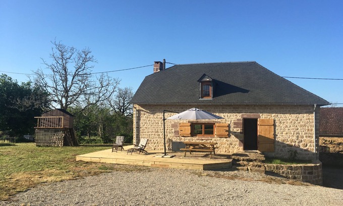Stone house in the countryside with a huge garden (4 000m2). external table, bbq, umbrella, ...