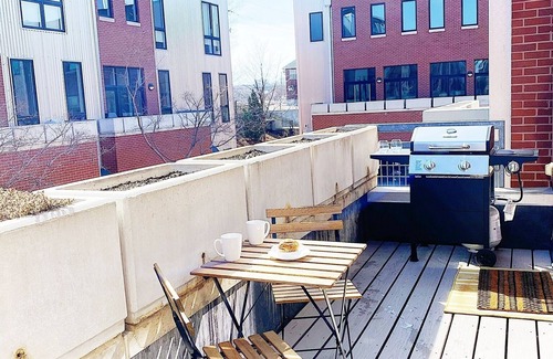 - The rooftop deck is our favorite space! The deck has a table with propane fire pit, seating for 6, and great views of the Omaha skyline.